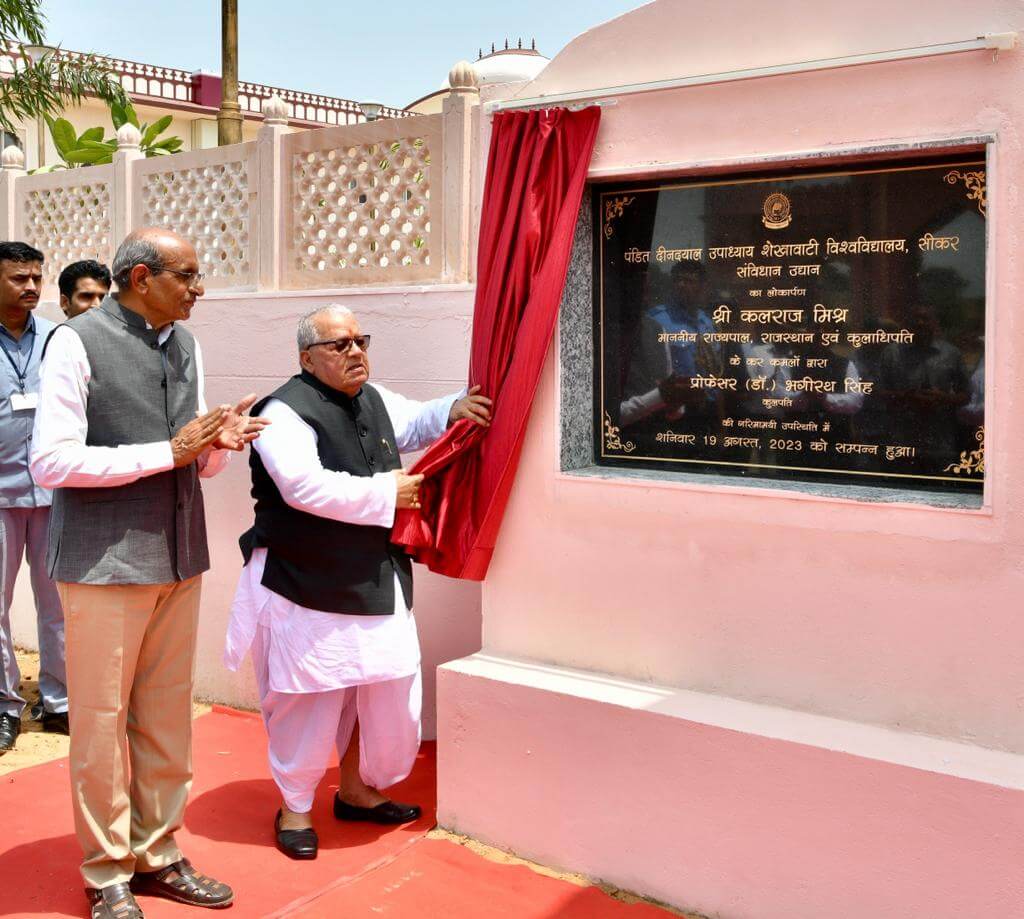 राज्यपाल मिश्र ने कहा कि यह अत्यंत प्रसन्नता की बात है कि पंडित दीनदयाल उपाध्याय शेखावाटी विश्वविद्यालय, सीकर द्वारा अपने परिसर में संविधान पार्क की स्थापना की है। विश्वविद्यालयों में संविधान वाटिका की स्थापना के पीछे मंशा यही है कि विद्यार्थियों को संवैधानिक जागरूकता के साथ ही भारतीय संविधान की उद्देशिका, मूल अधिकारों और कर्तव्यों , समानता, न्याय आदि के सिद्धान्तों के आदर्शो को अपने जीवन में उतार सके।
