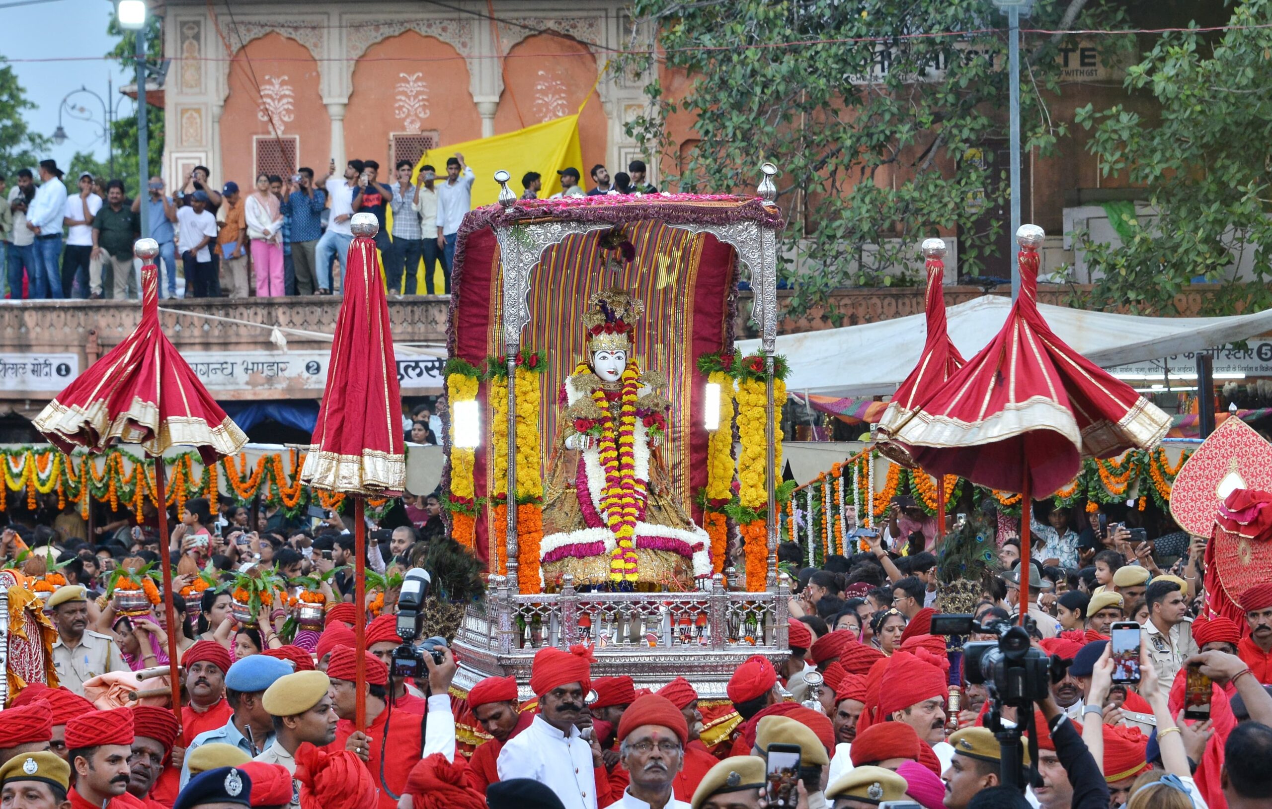 तीज माता की भव्य और शाही शोभायात्रा जनानी ड्यौड़ी, सिटी पैलेस, त्रिपोलिया गेट से शुरू होकर छोटी चौपड़, चौगान स्टेडियम होते हुए तालटोरा पौंड्रिक पार्क तक पहुंची।