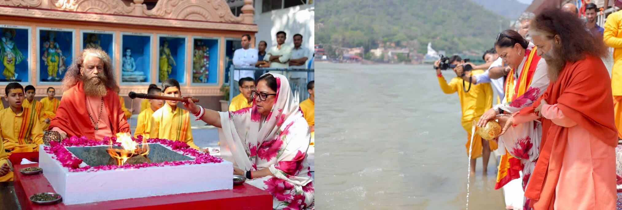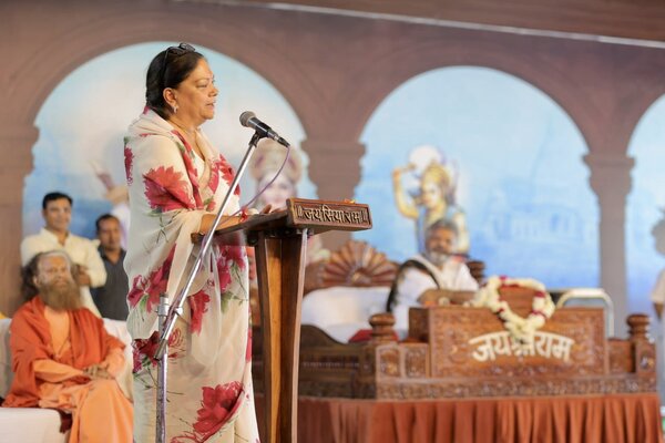 पूर्व सीएम राजे ने चिदानंद सरस्वती महाराज ने पर्यावरण और जल संरक्षण अभियान की तारीफ़ की और कहा अटल जी के नदियों को जोड़ने के प्रयासों को साकार करने के लिए हमने मुख्यमंत्री जल स्वावलंबन अभियान और नदियों से जोड़ने की योजना पर काम किया।जिसे इस सरकार ने बंद कर दिया।