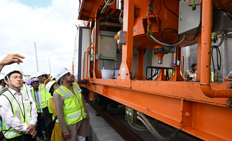 सूरत में ट्रैक स्लैब बिछाने के स्थल का दौरा: दोनों मंत्रियों ने सूरत हाई-स्पीड रेल स्थल पर ट्रैक निर्माण स्थल का दौरा किया, जहाँ उन्होंने वायडक्ट पर जे-स्लैब गिट्टी रहित ट्रैक प्रणाली की स्थापना का काम देखा। ट्रैक स्लैब की स्थापना और स्थायी रेल ट्रैक बिछाने का कार्य तेजी से चल रहा है।