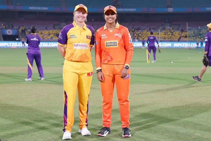 टॉस जीतकर पहले बैटिंग करने उतरी गुजरात जायंट्स ने पावरप्ले में अच्छी शुरुआत की। सोफिया डंकली और सब्बिनेनी मेघना ने पहले विकेट के लिए 34 रन जोड़े। लेकिन, चौथे ओवर में डंकली आउट हो गईं। अगले ही ओवर में मेघना भी पवेलियन लौट गईं। टीम फिर 6 ओवर में 2 विकेट के नुकसान पर 45 रन ही बना सकी।