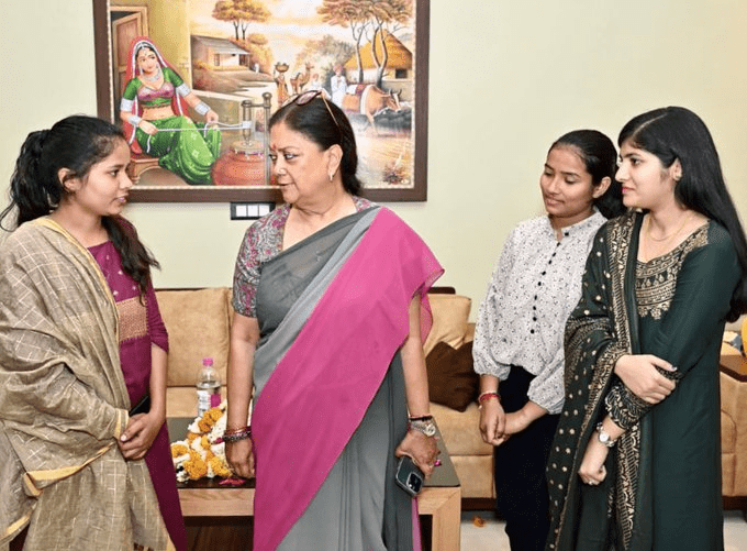 लड़कियों ने कहा- यह स्कूटी पूर्व बीजेपी सरकार में आपने ही दी थी। इसके बाद राजे एक लड़की की स्कूटी पर बैठकर मुख्य मार्ग तक गईं। वहां से वो उदयपुर के लिए रवाना हो गईं।