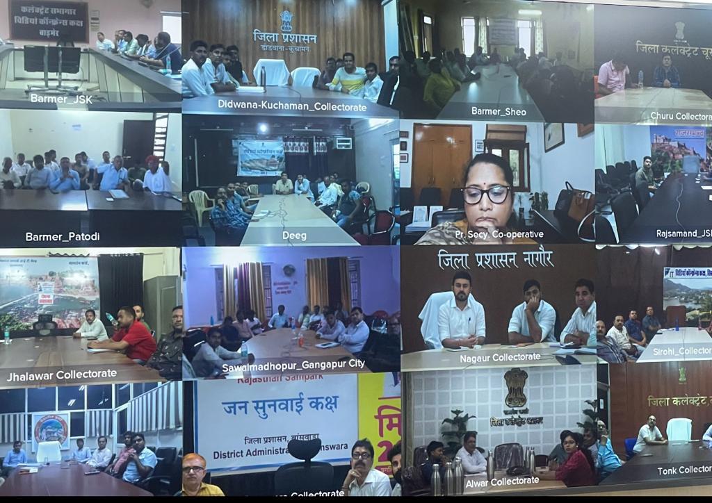 वीसी के दौरान विभिन्न वीडियो के माध्यम से राजस्थान मिशन-2030, सहकारिता की उपलब्धियां, मुख्यमंत्री निःशुल्क अन्नपूर्णा फूड पैकेट योजना, राजस्थान सहकारी ग्रामीण परिवार आजीविका ऋण योजना,ऑनलाइन सुझाव भेजने की प्रक्रिया, जन कल्याण मोबाइल एप के माध्यम से फेस टू फेस सर्वे की प्रक्रिया के बारे में बताया गया। वीसी में जिला, ब्लॉक, केवीएसएस, जीएसएस, यूट्यूब, वैबेक्स सहित अन्य माध्यम से लोग जुड़े। इस अवसर पर विभागीय अधिकारी भी उपस्थित थे।