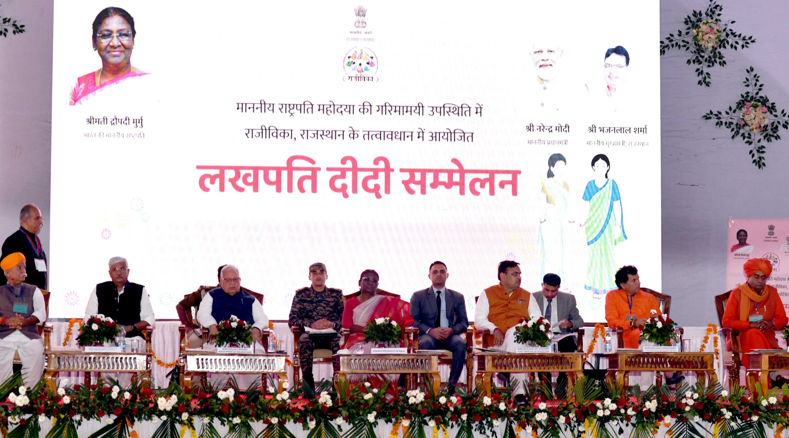 जैसलमेर:-राष्ट्रपति द्रौपदी मुर्मू और राज्यपाल कलराज मिश्र की गरिमामयी उपस्थिति में जैसलमेर के शहीद पूनम सिंह स्टेडियम में ’’लखपति दीदी सम्मेलन’’ का आयोजन हुआ। राजस्थान ग्रामीण विकास विभाग के तत्वावधान में हुए सम्मेलन में मुख्यमंत्री भजनलाल शर्मा ने कहा कि समृद्ध महिलाओं से ही समाज, प्रदेश व देश की खुशहाली संभव है। हमारी सरकार महिला सशक्तिकरण और उनके सर्वांगीण विकास के लिए कृत संकल्पित है। उन्होंने कहा कि प्रधानमंत्री नरेन्द्र मोदी जी ने नारी शक्ति के महत्व को समझते हुए लखपति दीदी योजना की शुरूआत की है। मोदी के कुशल नेतृत्व में महिला समृद्धि में हुए कार्यों से देश और प्रदेश समृद्ध और सशक्त होगा।