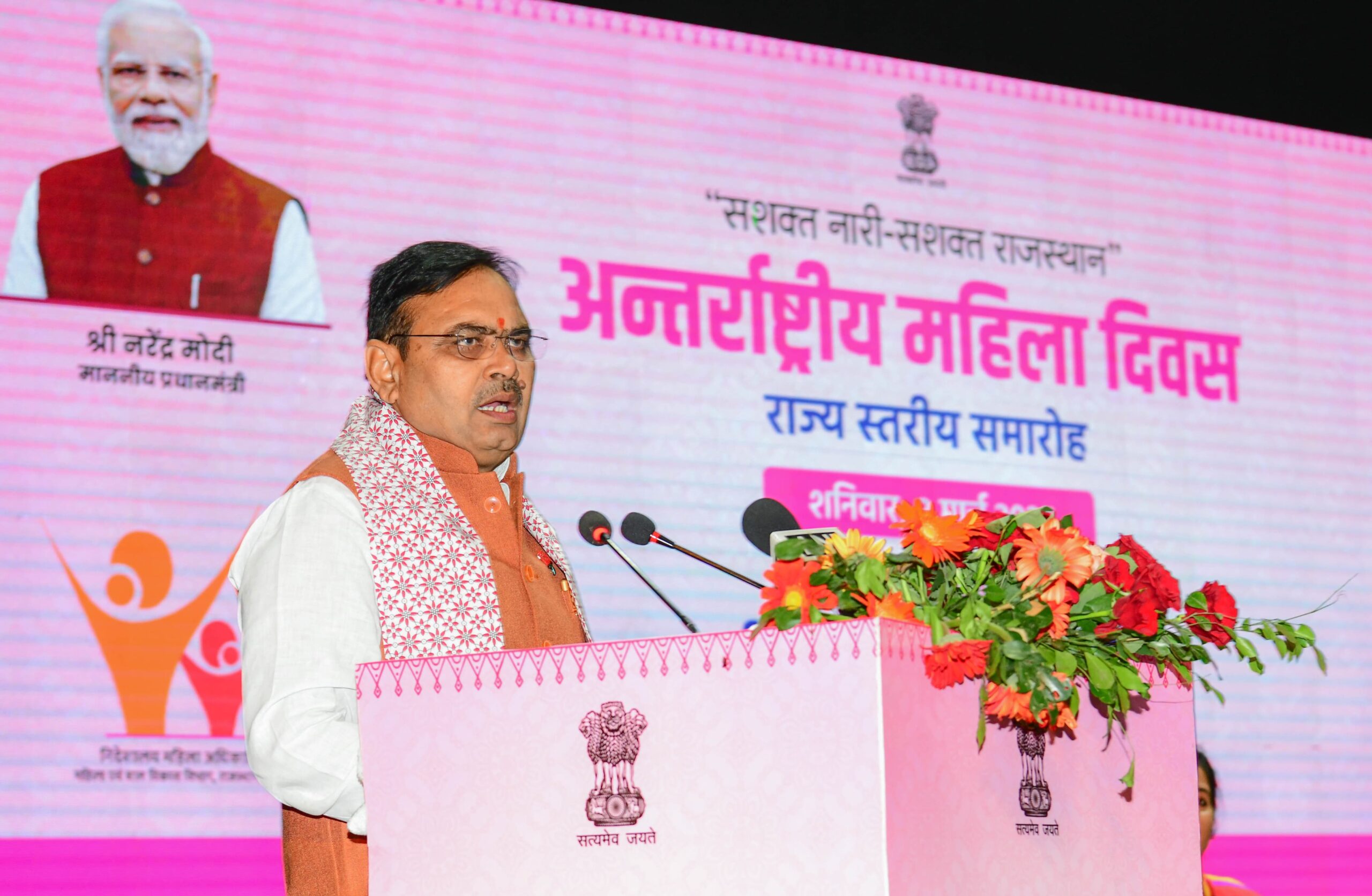 मुख्यमंत्री शर्मा शनिवार को बिड़ला सभागार में अंतरराष्ट्रीय महिला दिवस पर आयोजित राज्य स्तरीय महिला सम्मान समारोह को संबोधित कर रहे थे। उन्होंने कहा कि महिलाएं त्याग, करुणा, स्नेह, धैर्य, सहनशीलता, संवेदनशीलता, सौम्यता, विनम्रता, वीरता व सहानुभूति जैसे अनेक गुणों की प्रतिमूर्ति होती हैं। यह दिन मातृशक्ति के योगदान को सम्मान देने का अवसर तथा हर क्षेत्र में महिलाओं की शानदार उपलब्धियों पर गर्व करने का दिन है। उन्होंने कहा कि हर बच्चे के लिए उसकी मां ही प्रथम गुरु होती है तथा व्यक्ति को सुशिक्षित एवं सभ्य बनाने में नारी का बहुत बड़ा योगदान होता है। हमारी संस्कृति में नारी को हमेशा सम्मान दिया गया है। शास्त्रों में भी कहा गया है कि जहां नारी की पूजा की जाती है वहां देवता निवास करते हैं।
