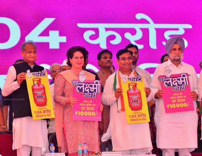 झुंझुनू:-राजस्थान में झुंझुनूं के अरडावता में कांग्रेस की चुनावी रैली में प्रियंका गांधी और अशोक गहलोत ने दो बड़े चुनावी वादे किए-