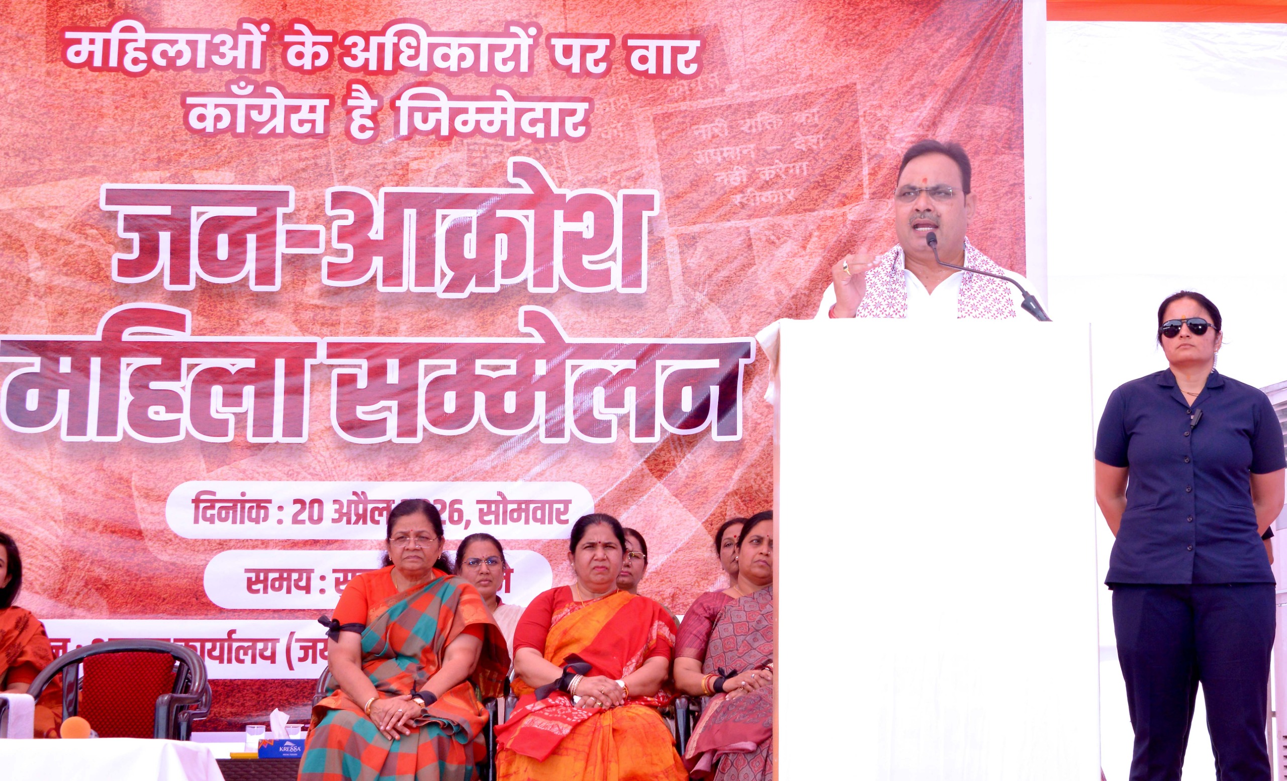 इससे पहले उप मुख्यमंत्री दिया कुमारी ने अपने संबोधन में कहा कि प्रधानमंत्री नरेन्द्र मोदी नेतृत्व में महिलाओं की सहभागिता बढ़ाने के लिए संसद में नारी शक्ति वंदन अधिनियम लेकर आए, लेकिन विपक्ष और उसके सहयोगी दलों ने इसका विरोध किया, यह शर्म की बात है। इन्होंने आम महिलाओं को मिलने वाले अवसर को छीन लिया। महिलाओं के इस अपमान को बर्दाश्त नहीं किया जाएगा। इस रैली के माध्यम से महिला विरोधी दलों को मुंहतोड़ जबाव दिया जाएगा।