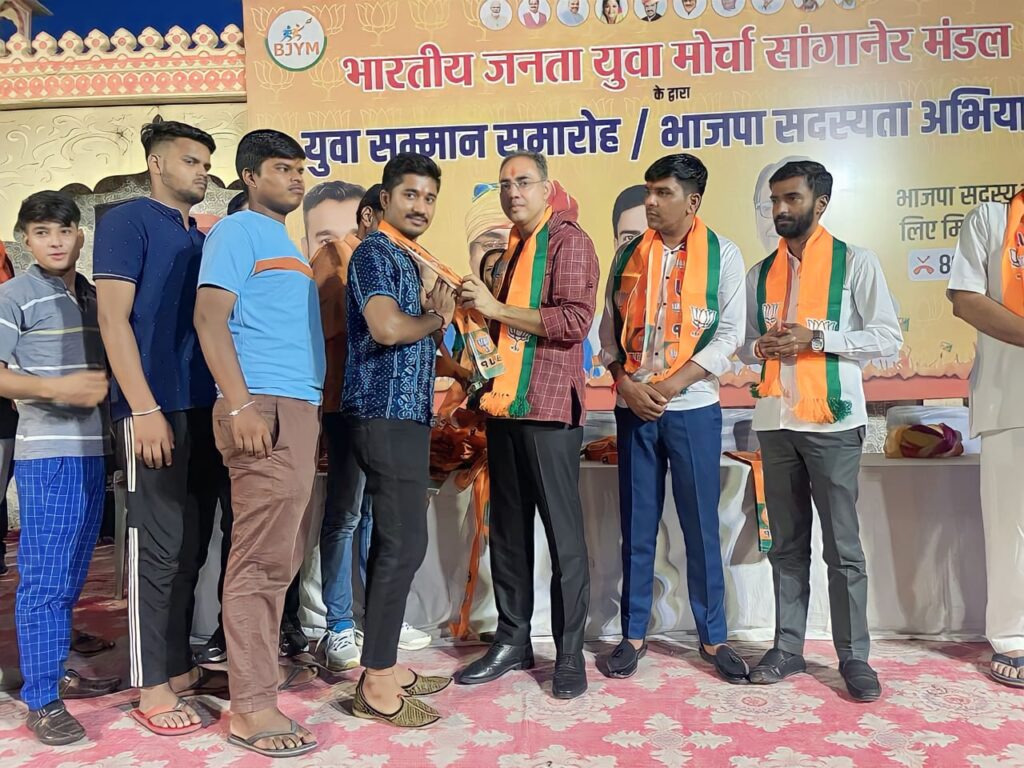 जयपुर:-जयपुर के सांगानेर इलाके मे हुआ युवा सम्मान समारोह जिसमे 100 से ज़्यादा युवाओं को सम्मानित किया सांगानेर से विधायक डॉ अशोक लाहोटी इस समारोह मे शामिल रहे I बीजेपी के युवा मोर्चा प्रदेशाध्यक्ष अंकित चेची और बीजेपी के युवा मोर्चा जिलाध्यक्ष सुरेंद्र सिंह पूरवंशी भी इस समारोह मे उपस्थित रहे I