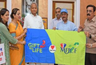 श्रीश्याम मंदिर कमेटी के ट्रस्टी मानवेंद्र सिंह चौहान ने किया स्वागत
